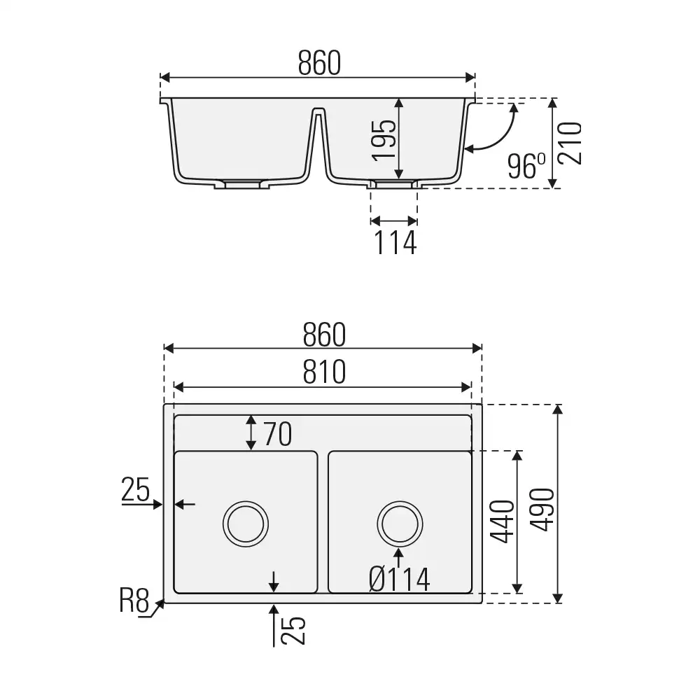 Bacias em granite. Montagem acima ou debaixo da bancada.