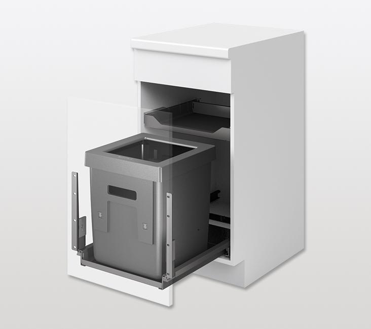 Inclui todo o mecanismo, incluindo corrediças soft-open e soft-close com 100 kg de capacidade.