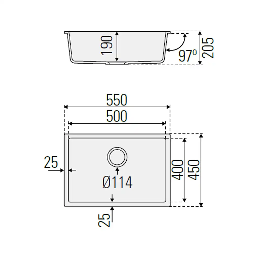 Bacias em granite. Montagem acima ou debaixo da bancada.